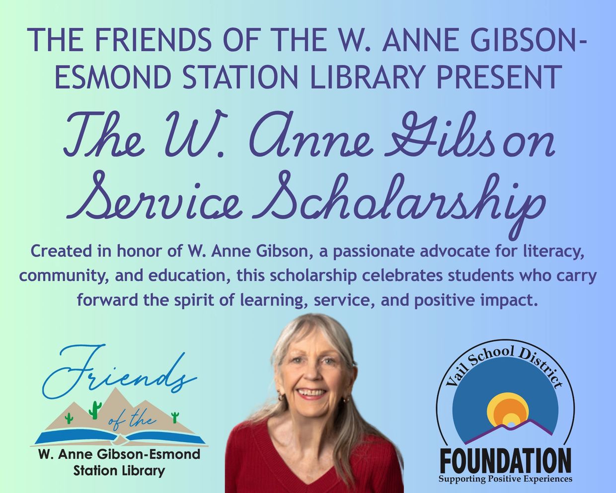 In honor of W. Anne Gibson, whose life has written remarkable chapters of service and leadership, your contribution will support a graduating student in the greater Vail area who is ready to turn the page, lead with heart, and write their own story of community impact; just like Anne.